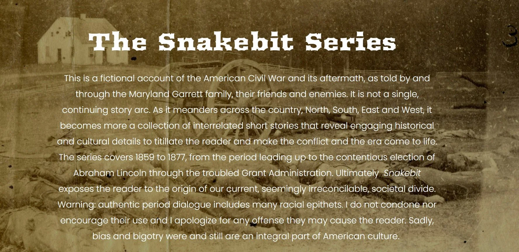 Author John Poniske will be reading from his Snakebit book series. Books 1, 2, & 3 in the series will be available for purchase for $15. The Snakebit Series covers the entire American Civil War and the contentious Reconstruction that followed. The author invites comments and questions and will happily sign purchased books.
